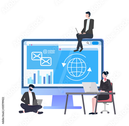 Business start up koncept vektorové ilustrace. Raketový start a počítač na pozadí. Podnikatel založit novou společnost.