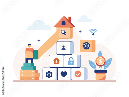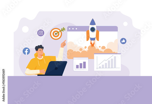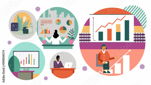 Zahájení podnikání, nový projekt zahájení kreslené postavičky, plochý vektor izolované ilustrace. Lidé začínají podnikat, analyzují data.