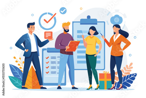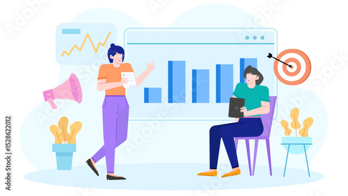 Business startup s novými nápady, vize, strategie růstu, profesionální tým tiny people, vektorové ploché ilustrace. Zahájení podnikatelského projektu, Inovace, podnikání, týmová práce.