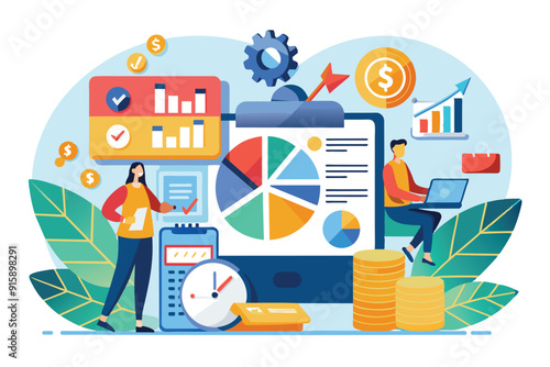 Obchodní strategie set, ploché vektorové izolované ilustrace. Analýza dat, digitální marketing, Správa úkolů, plánování, obchodní vize.