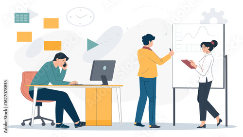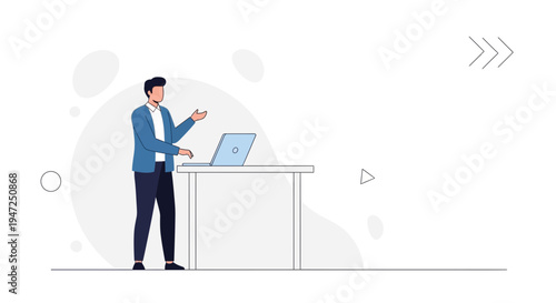 Podnikatel s oceněným pohárem stojícím na podstavci vítězství, vektorová plochá ilustrace izolovaná na bílém pozadí. Koncept obchodního úspěchu pro webový banner, webovou stránku atd.
