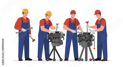Postavy obchodního týmu diskutují o nápadech, debatují, přednášejí, přemýšlejí, pijí kávu, pracují na přenosných počítačích, vektorové ploché izolované ilustrace. Týmová práce, kolekce kancelářských scén.