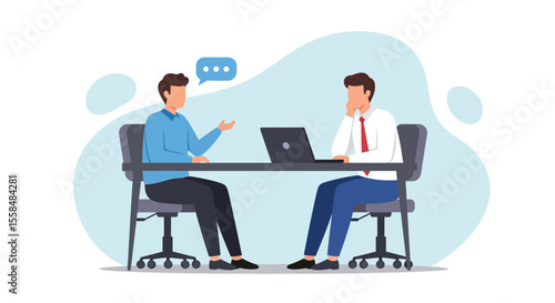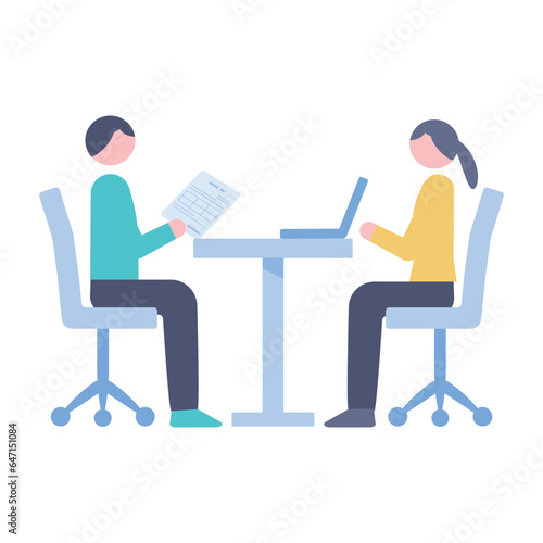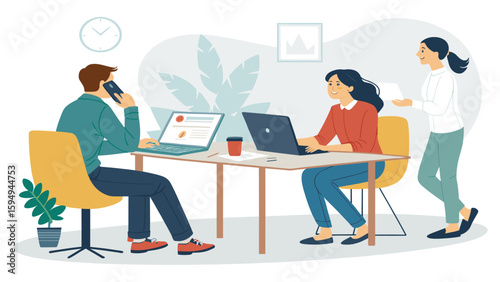 Podnikatel pracuje bok po boku s podnikatelkou, vektorový byt izolovaná ilustrace. Kancelářská scéna obchodního týmu, týmová práce, koncept pracoviště pro webový banner, webovou stránku atd.