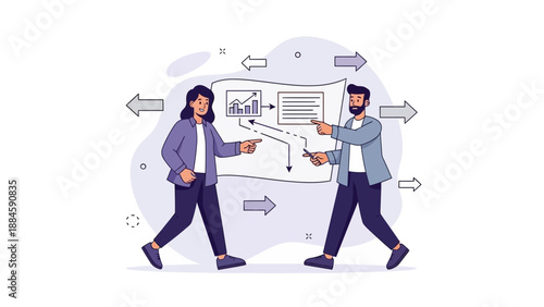 Podnikatelé muž a žena pijí kávu a mluví k sobě, vektorový plochý izolovaný obrázek. Kancelářská scéna obchodního týmu, koncept přestávky na kávu pro webový banner, webovou stránku atd.