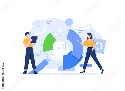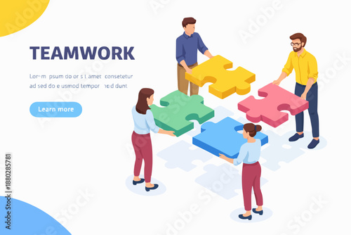 Obchodní tým dělat žárovka koláčový graf dohromady, ploché vektorové izometrické ilustrace. Týmová práce, spolupráce, partnerství, spolupráce.