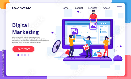 Šablona webových stránek Business vector, design webových stránek a vstupních stránek pro vývoj webových stránek a mobilních stránek. Koncept kancelářských situací s datovým dashboardem, lidé posílají zprávy, Přestávka na kávu.