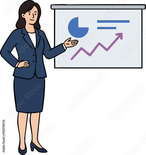 Podnikatelka znak vektorové ikony. Žena profesionální mluvení. Sebevědomý asistent stojící izolovaných na bílém pozadí. Lidé portrét