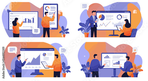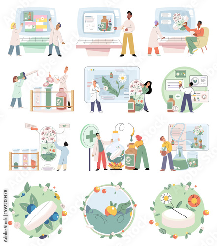Obchodní žena každodenní život scéna set, plochý vektor izolované ilustrace. Dívka snídá a obědvá, ráno běží v parku, pracuje, nakupuje, spí. Každodenní rutina, každodenní činnosti