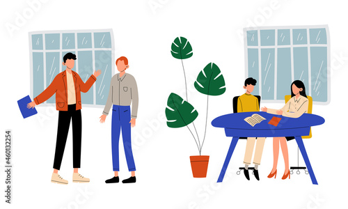 Obchodní žena dělá prezentaci a ukazuje na tabuli. Koncept vektorové ilustrace. Žena kněz kázání kázání v katolické církvi. Žena představuje podnikatelský plán.