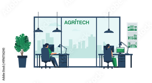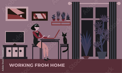 Obchodní ženy pracují s notebooky v kanceláři. Koncept vektorového banneru v designu plochého stylu. Interiér kanceláře.