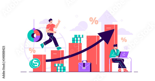 Obchodní diagramy, koncepční plochá vektorová ilustrace. Týmová práce na financích a obchodní strategii. Finanční grafy a data analytics dashboard. Lidé ve funkci.