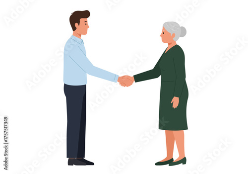 Podnikatel a stavitel potřesení rukou vektorové ikony izolovaných na bílém pozadí.