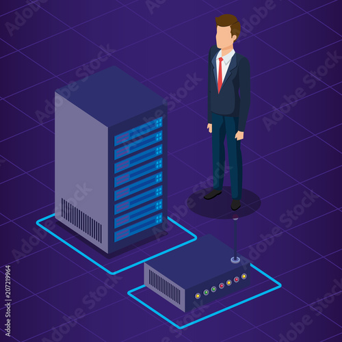 Vektorová ilustrace muže nesoucího hromadu dokumentů a jít na své pracoviště v kleci. Podnikatel chycen v pasti, plochý styl designu.