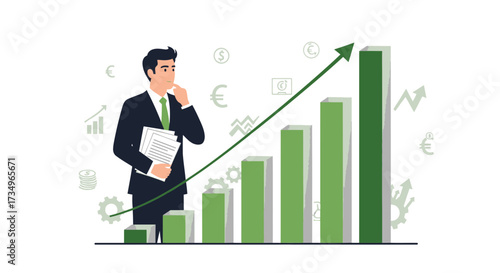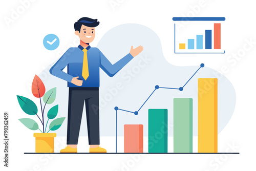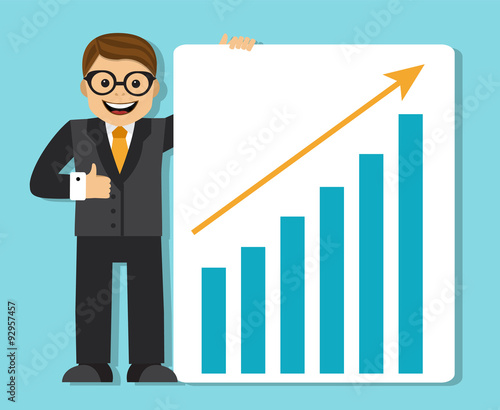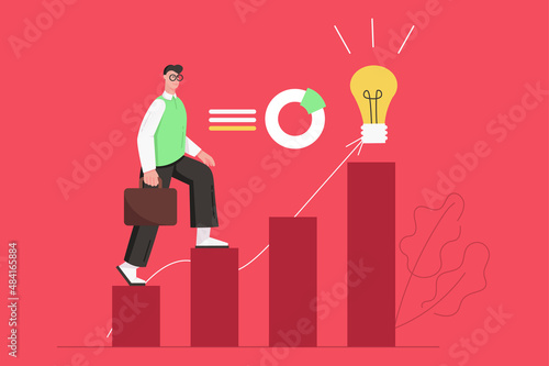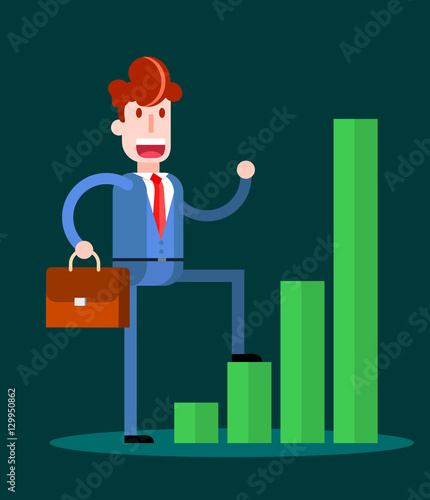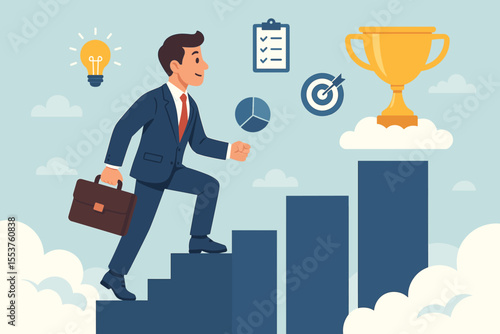 Podnikatel šplhá po žebříku k úspěchu. Dosažení cíle. Motivace a cíl koncepce být úspěšný v podnikání a životě. Vektorová ilustrace v plochém provedení.