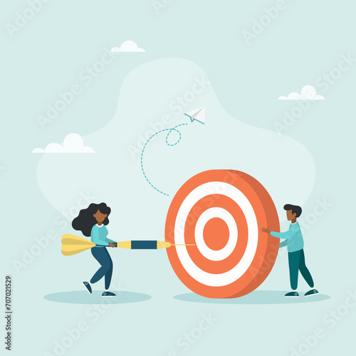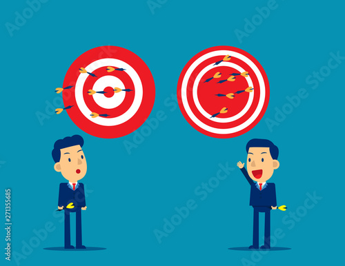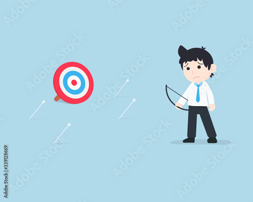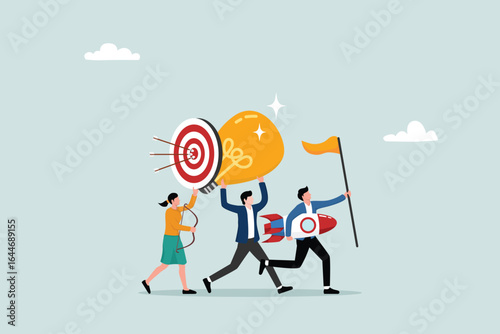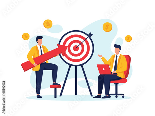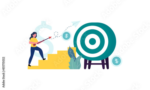 Podnikatel šplhá po žebříku k úspěchu. Dosažení cíle. Motivace a cíl koncepce být úspěšný v podnikání a životě. Vektorová ilustrace v plochém provedení.