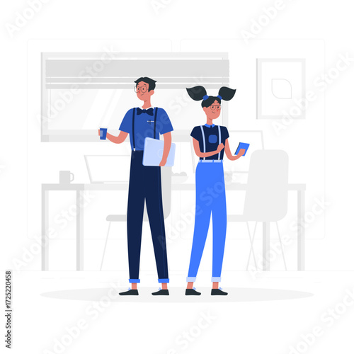 Podnikatel pití kávy stojící v blízkosti chladiče vody v kanceláři, ploché vektorové ilustrace. Káva. Čaj. Kancelářský životní styl.