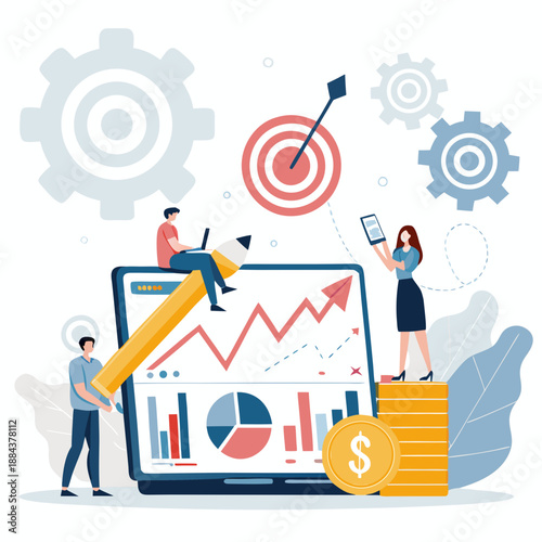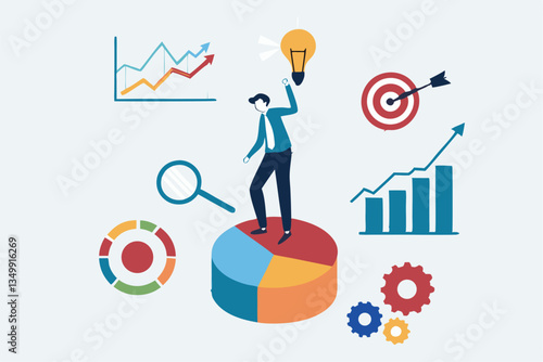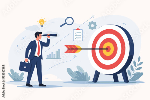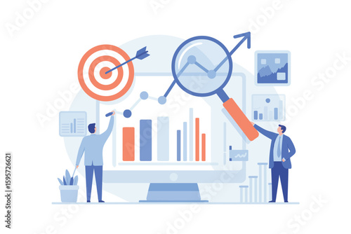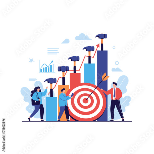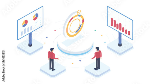 Podnikatel cíle úspěchy, finanční růst, ploché vektorové izometrické ilustrace. Podkova magnet cíl přitahuje zlaté mince.