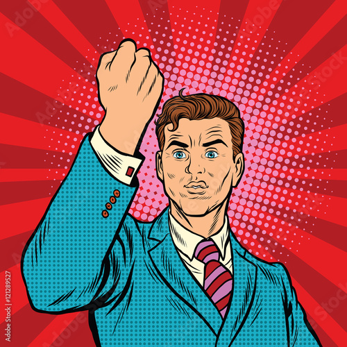 Podnikatel v panice finanční krize nebo selhání podnikání. Vektorová ilustrace v retro stylu pop art. Muž s řečovou bublinou.