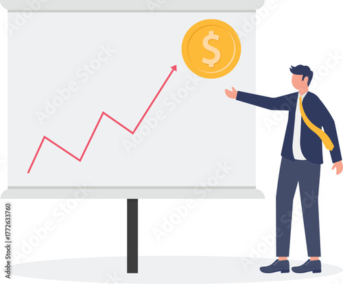 Vektorové ilustrace podnikatel žonglování zlaté mince s rezervní měny symboly dolar euro libra atd. Obchodní a finanční koncept designový prvek.