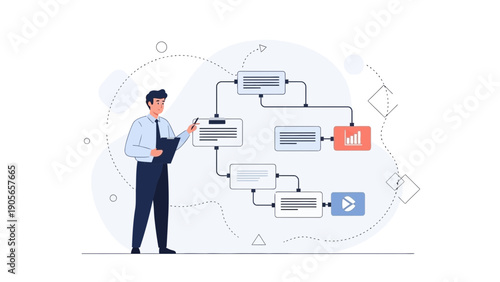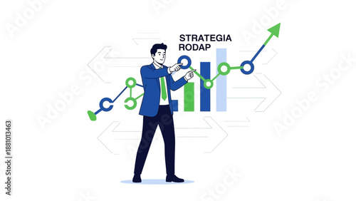 Obchodní muž při pohledu přes dalekohled stojící na mince stack, ploché vektorové ilustrace. Obchodní vůdce, kariérní růst, budoucí vize, finanční úspěch.