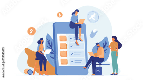 Podnikatel znaky tlačí domino dlaždice, drží trofej pohár, ploché vektorové izometrické ilustrace. Kancelářská válka, obchodní soutěž, koncept domino efektu.