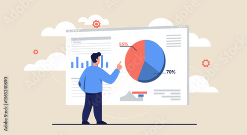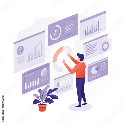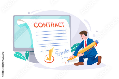 Podnikatel čtení smlouvy se štítem, ploché vektorové izometrické ilustrace. Soukromí. Kontrola smlouvy, kontrola dohody a proces podpisu.