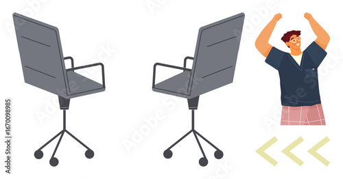 Obchodní muž sedící v křesle položil nohy na stůl, vektorový plochý design ilustrace. Úspěšný podnikatel odpočívá. Pocit dobré držení těla koncept pro web banner, webové stránky atd.
