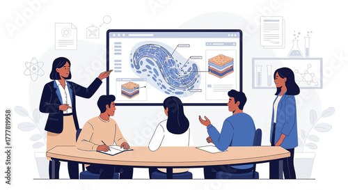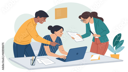 Podnikatel mluví se svým kolegou on-line pomocí počítače sedí u stolu v kanceláři, ploché vektorové ilustrace. Práce na dálku, domácí kancelář, komunikační technologie online chatu. Webinář, na volné noze.