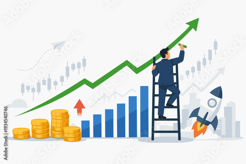 Podnikatel se snaží udržet zvyšování dolaru šipka grafu z pádu, ploché vektorové izometrické ilustrace. Koncept ekonomické inflace.