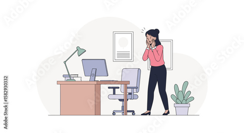 Moderní kancelářské pracoviště. Podnikatel pracující na přenosném počítači, když stál u vysokého kancelářského stolu, plochá vektorová ilustrace. Pracovní prostor s vysokými stoly kancelářský nábytek.