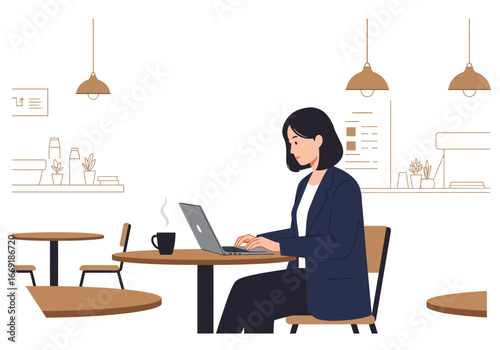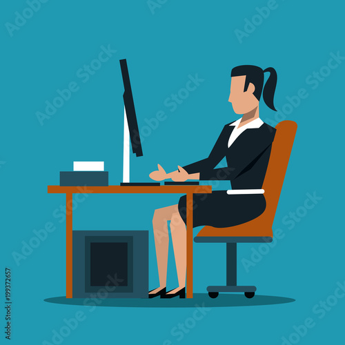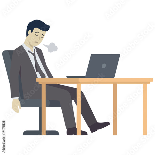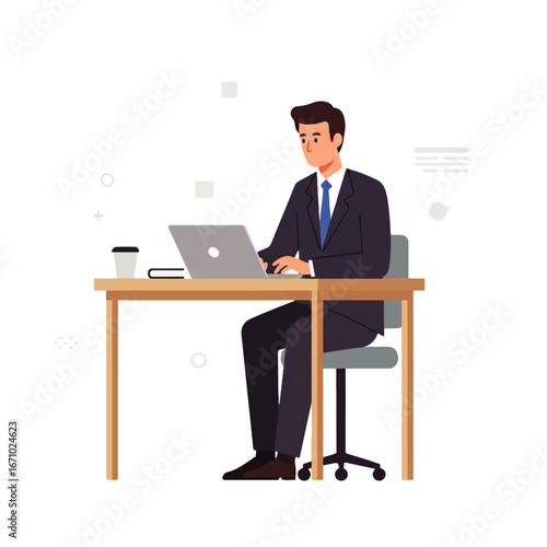 Podnikatel pracuje na notebooku v kanceláři vektorové ikony izolovaných na bílém pozadí