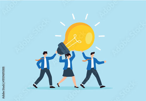 Vektorové ilustrace dvou podnikatelů sbírání puzzle elektrické žárovky. Vytváření nápadů a týmová práce koncept designový prvek.