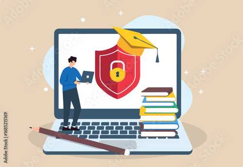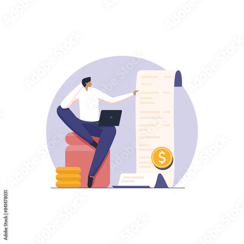 Zaneprázdněný muž zaměstnanec ikona vektor. Guy freelancer sedí na stohu složky dokumentů s notebookem a pracuje na dálku