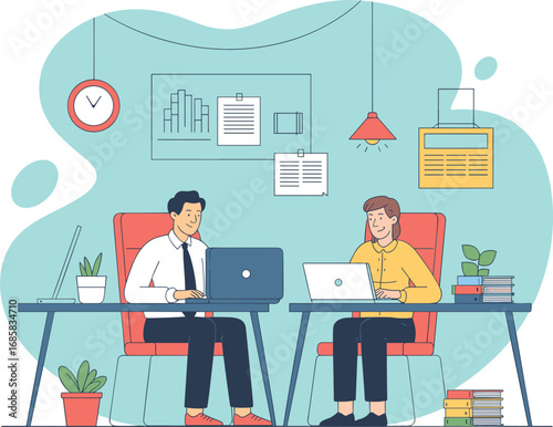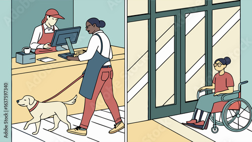 Zaneprázdněná matka s dítětem pracuje v kavárně. Žena drží své dítě a pracuje na počítači. Pracovní máma koncept vektorový plakát. Mateřství a kariéra.