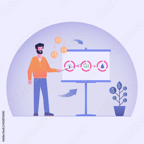 Obchod s pánským oblečením. Kupující, muž kreslená postavička nakupování pro boty v pánském módním butiku, ploché vektorové ilustrace. Obchod s oblečením. Pánské oblečení a móda.