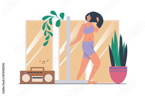 Vektorová ilustrace muže, který si koupil štěně pro svou dceru. Interiér zverimexu, šťastné dítě a šťastný otec plochý styl designových prvků.
