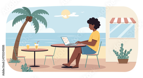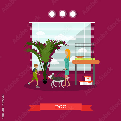 Vektorové ilustrace ženy nákupu tropických exotických ryb. Interiér zverimexu. Ploché designové prvky.