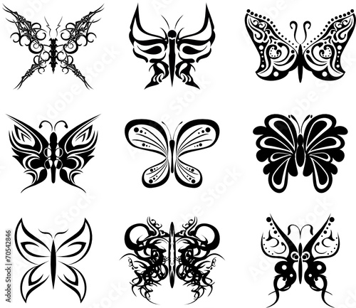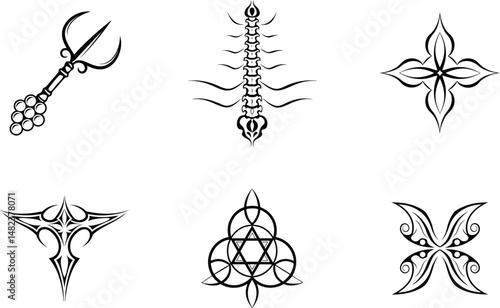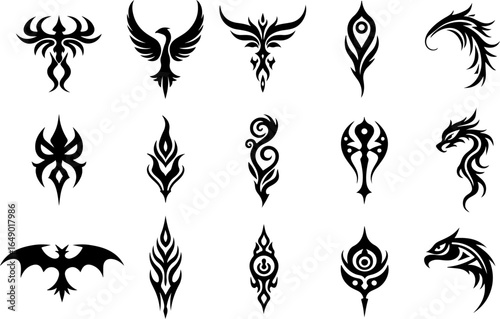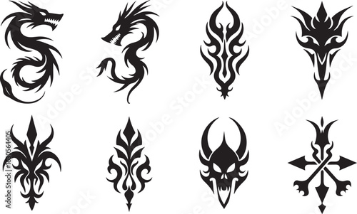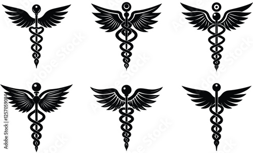 Caduceus medical and health symbol set, vektorové izolované ilustrace. Dva hadi vinutí kolem okřídleného personálu místo tyče Asclepius. Symbol Hermes, řecká mytologie.