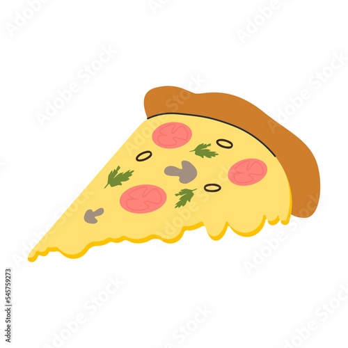 Dort kus kreslený šťastný charakter. Šťastný piškotový koláč plátek vektor. Tvarohový koláč s čokoládovou polevou a brusinkovým pečivem dezert ilustrace. Sladký roztomilý pekárna izolovaných na bílém pozadí