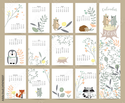 Rok 2019 kalendář vektorové šablony. Roční kalendář zobrazující měsíce s roztomilými pirátskými zvířaty, pirátskými doplňky a mořskými předměty.