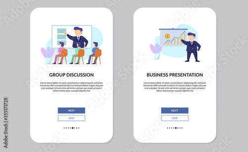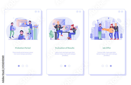 Call centrum, zákaznická podpora, Contuct US mobile app onboarding obrazovky. Menu banner vektorová šablona pro vývoj webových stránek a aplikací.