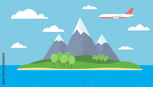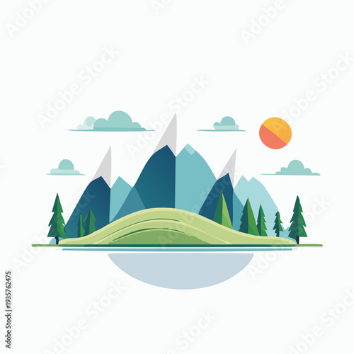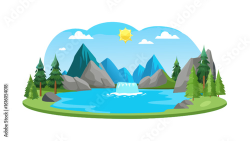 Horský tábor origami papír řez umění vektor. Letní cestovní pozadí řemeslo 3D krajina. Hora, jedle les a turistický stan design ilustrace