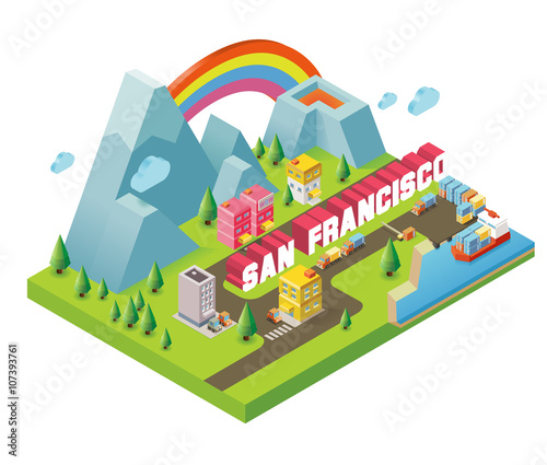Izometrický koncept kempu. Vektorové ilustrace v plochém 3D stylu. Venkovní táborová aktivita. Cestování v horách.