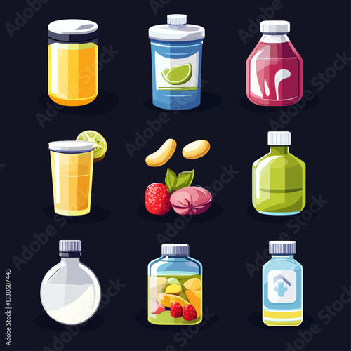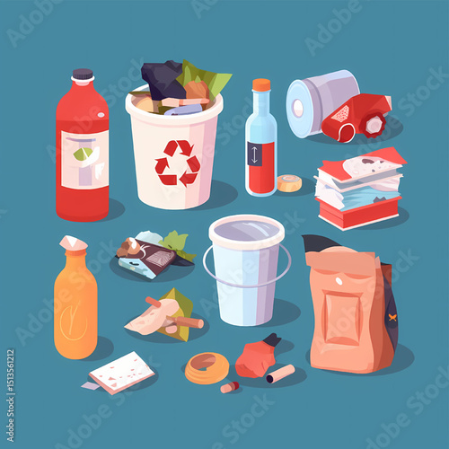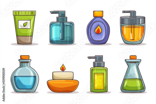 Cestovní vektorové set. Camping kuchyňské a turistické potřeby ilustrace. Varná konvice a koření, termohrnek, baňka, plynový hořák, hrnek a talíř, sekera a zápalky piknikové vybavení izolované na bílém
