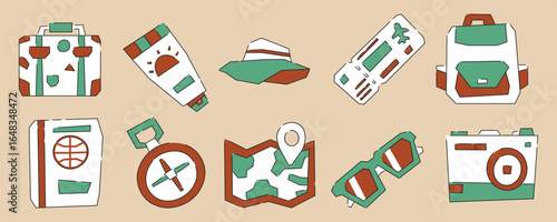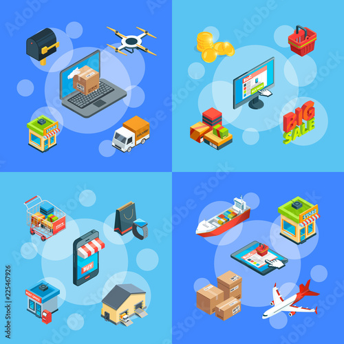 Kempování objektů ve vektorovém izometrickém stylu. Plochý 3D izometrický design. Rodinná dovolená, turistika, piknik, cestování autem. Kemp v lese. Izolované ikony a design šablony.