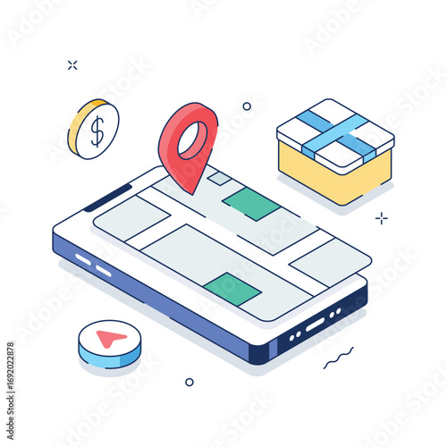 Camping online vektorové ilustrace. 3D izometrický nafukovací člun a stan na klávesnici notebooku. Online nakupování, E-commerce koncept designové prvky izolované na bílém pozadí.