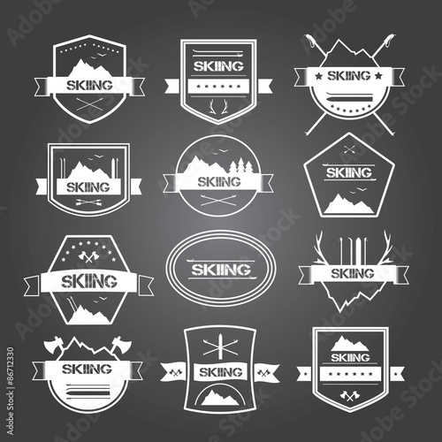 Camping vintage logo, odznak, sada emblémů, vektorové monochromatické ilustrace. Kempování čas, Letní tábor, extrémní venkovní dobrodružství černé štítky izolovaných na bílém pozadí.