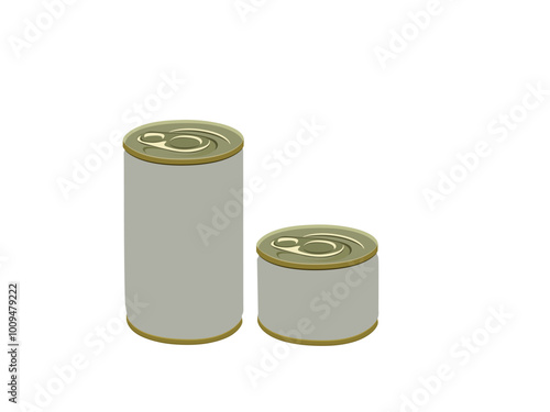 Canned sweet corn package maketa set, vektorové ilustrace izolovaných na bílém pozadí. Dvě realistické plechovky se štítkem a bez něj.