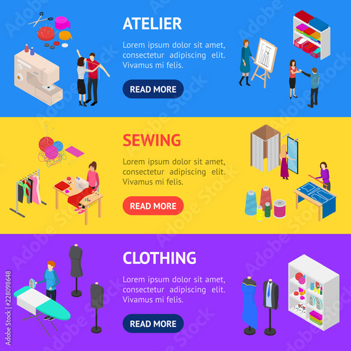 Car service center izometrické horizontální bannery. Vektorové ploché 3D konstrukční prvky. Auto malování, opravy kolizí, mytí aut, výměna pneumatik, garáž pro automechaniky.