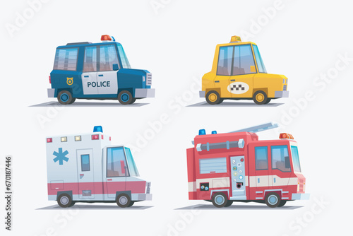 Car sharing service vektorová izometrická ikona. Dostupné a nedostupné vozidlo k pronájmu parkování na stanici izolovaných na bílém pozadí. Ekonomická doprava, carsharing a carpooling